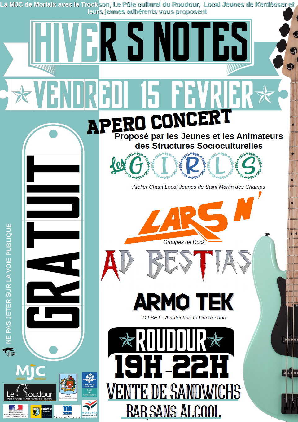Le 15 février 2019 entre 19h et 22h LE ROUDOUR Rue Park ar Roudour 29600 Saint-Martin-des-Champs Entrée gratuite Itineraire: https://her.is/2SnILga L’événement sur Facebook : https://www.facebook.com/events/1182329658583055/